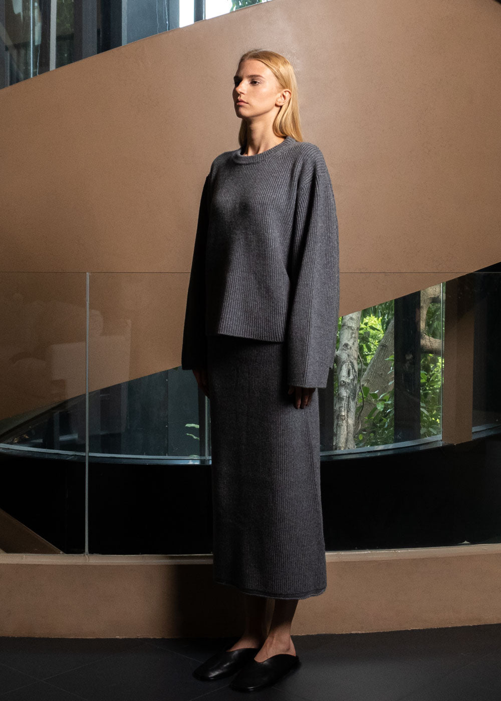 Cashmere and wool fabric mixed, a distinctive rounded hem design that adds a modern flair. Cozy and versatile, it's perfect for any casual occasion.