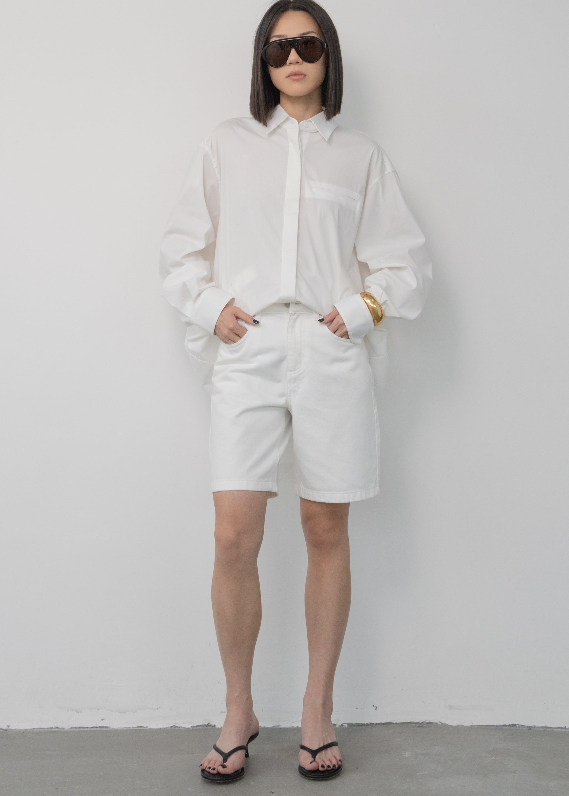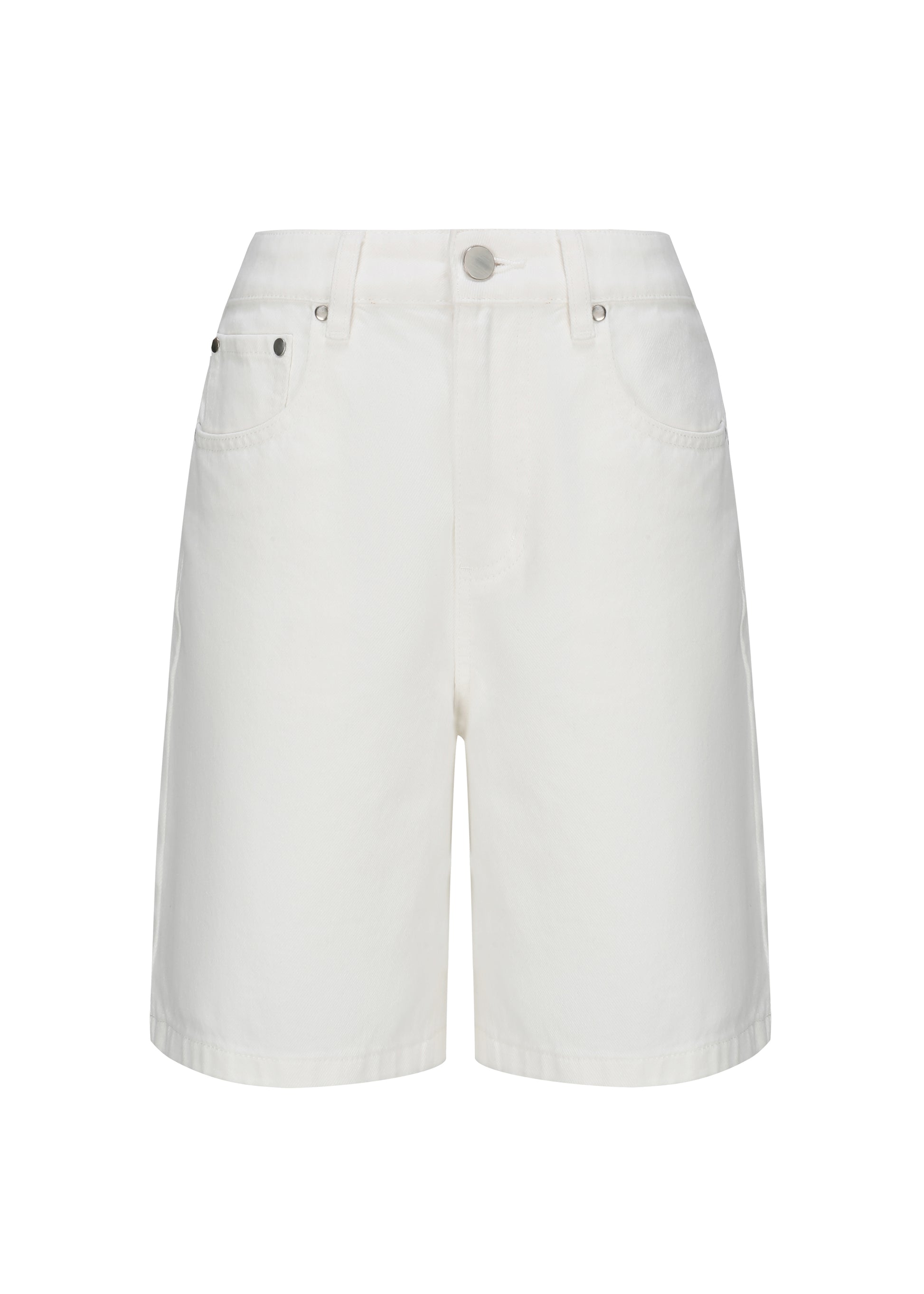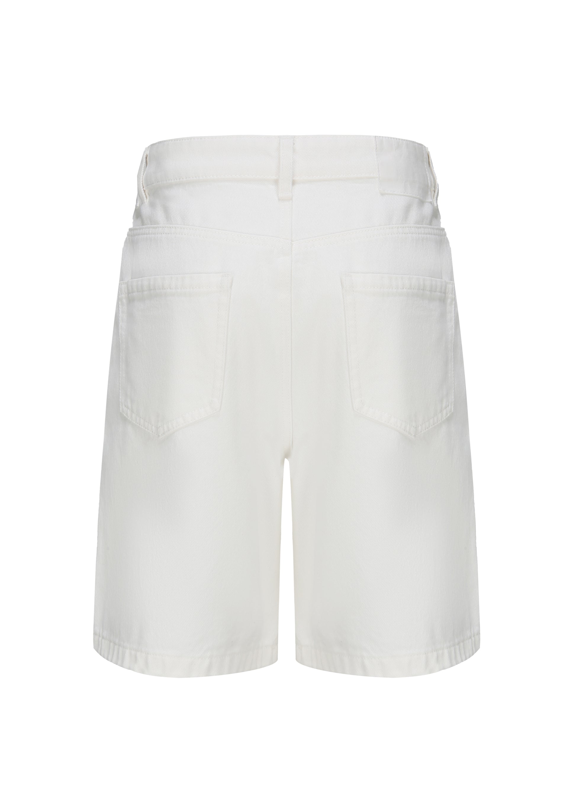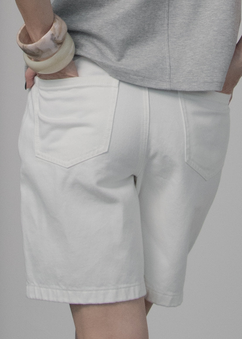 Thea Denim Shorts are made from premium cotton with a sleek, fitted silhouette. Featuring front and back pockets, these white denim shorts combine simplicity with refined style for everyday wear.