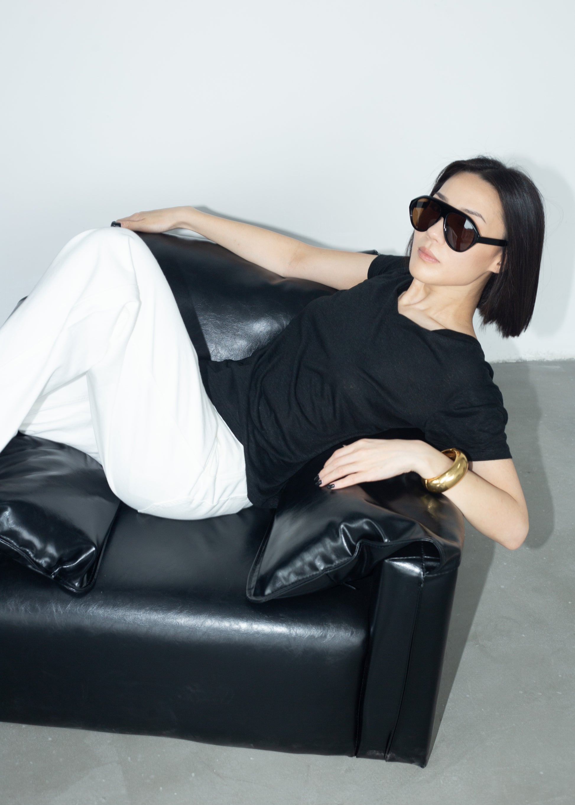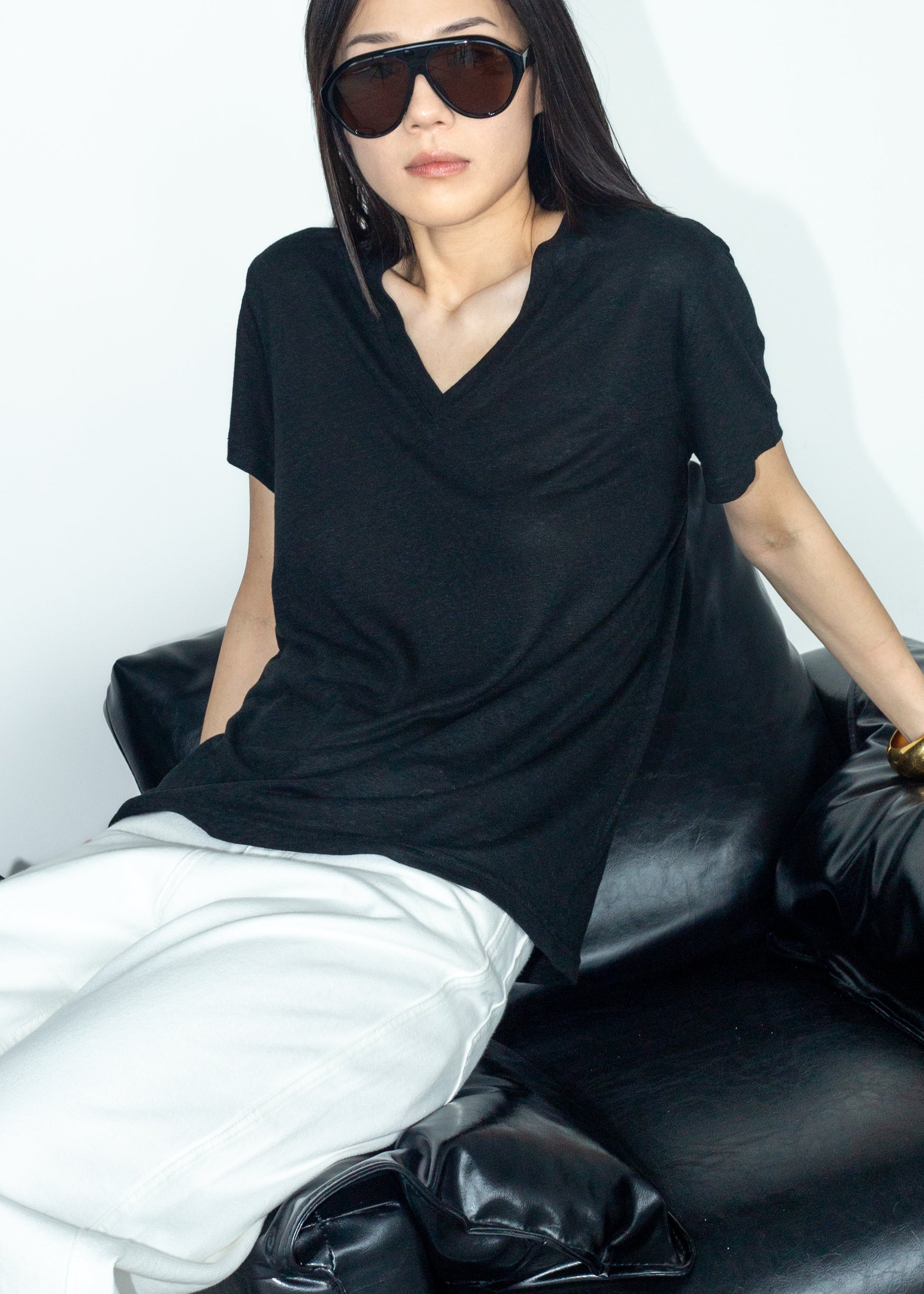 Made from a blend of dew-Linen and natural linen, this piece embodies quiet luxury through fabric and form. Grown and softened under open skies, the fibers are gently released through days of sun and rain, without chemicals or intervention. Finished with a clean V neckline, it offers breathability, elegance, and ease.