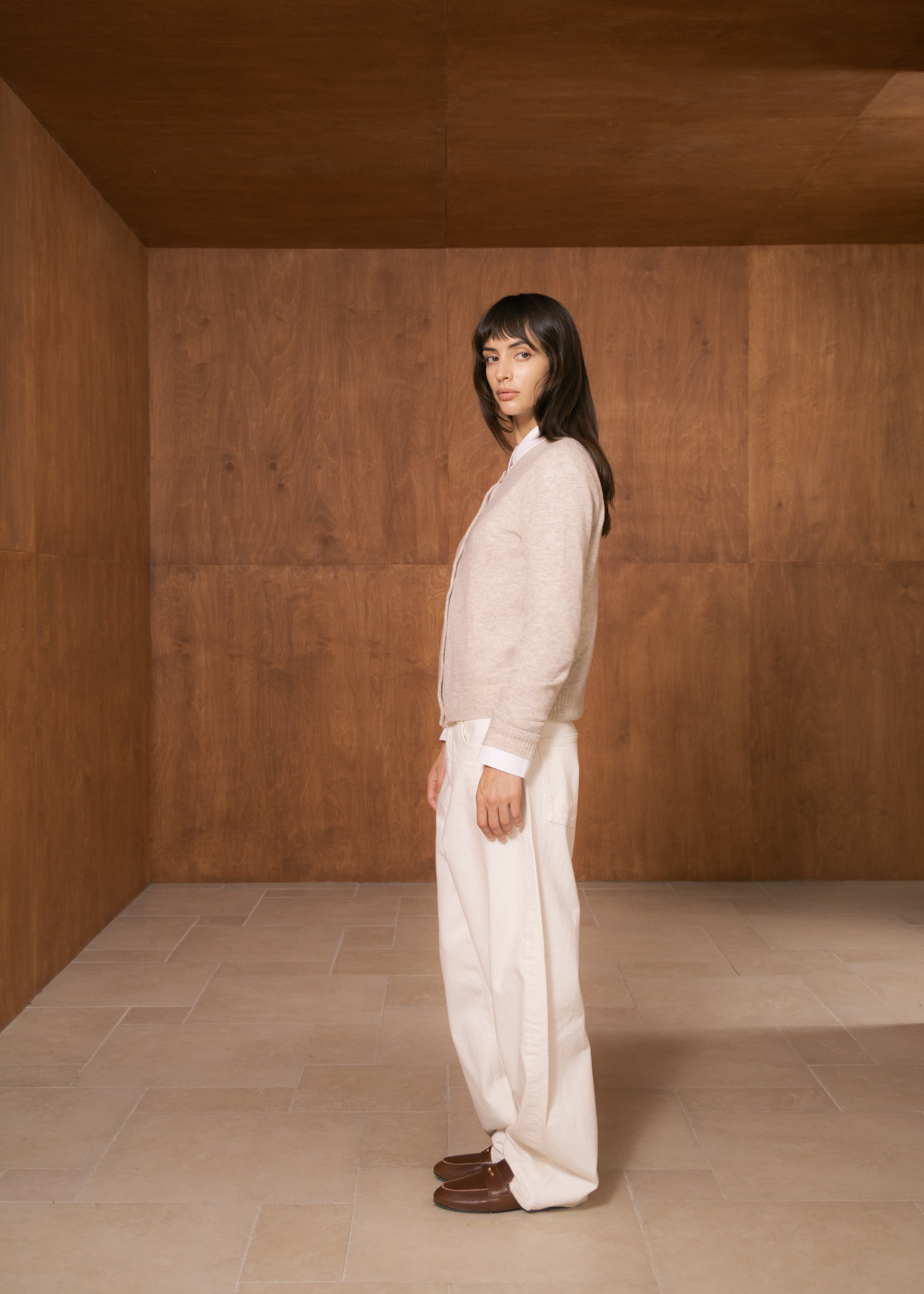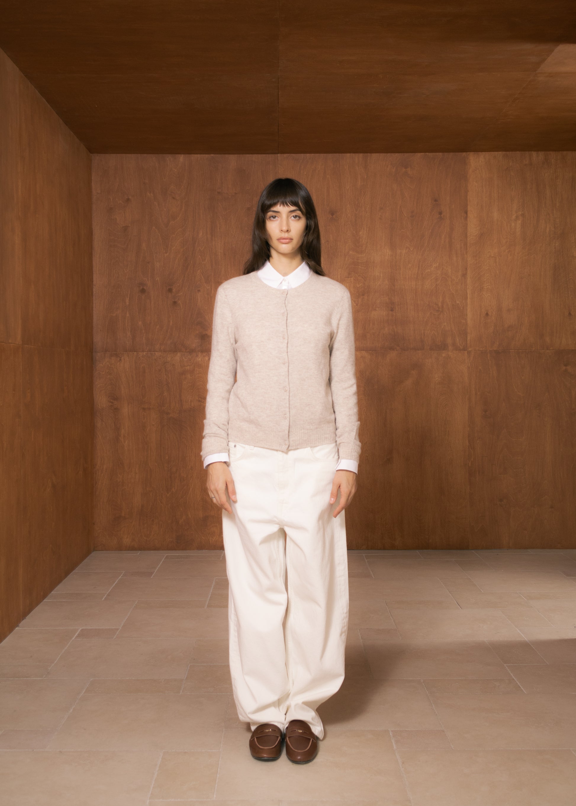 Classic button-up cardigan in soft, 100% wool. Cozy and versatile for layering, perfect for both casual and formal occasions. A timeless wardrobe essential.